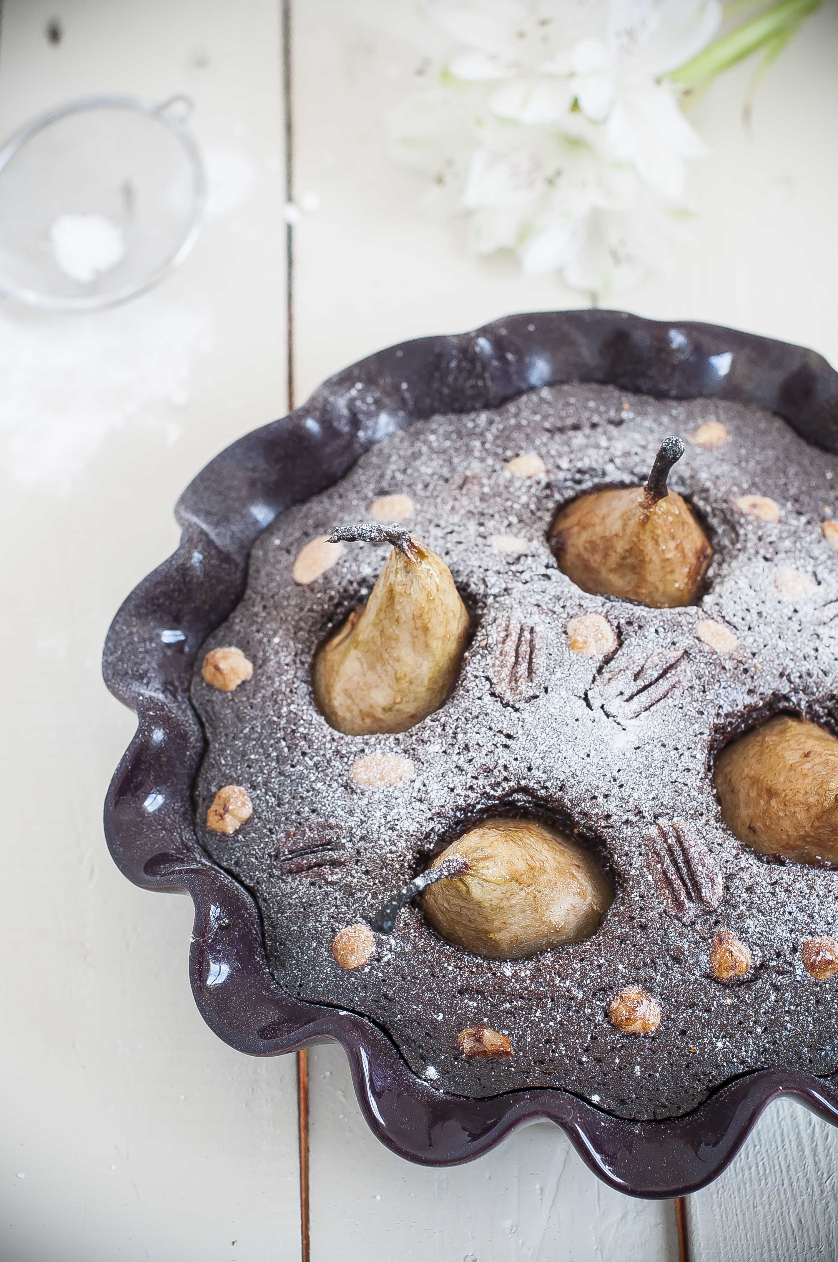 Como podéis apreciar, la pinta del brownie de peras, avellanas y nueces pecanas es ¡¡espectacular!!, es un postre muy vistoso, no sólo por el aspecto, sino que además he usado uno de mis moldes favoritos, el molde cerámico de Emile Henry, una marca muy conocida en la repostería francesa. El mío es de Lecuine, una tienda on-line especializada en utensilios de cocina, que te hace llegar los pedidos en 24h (esto es lo mejor).