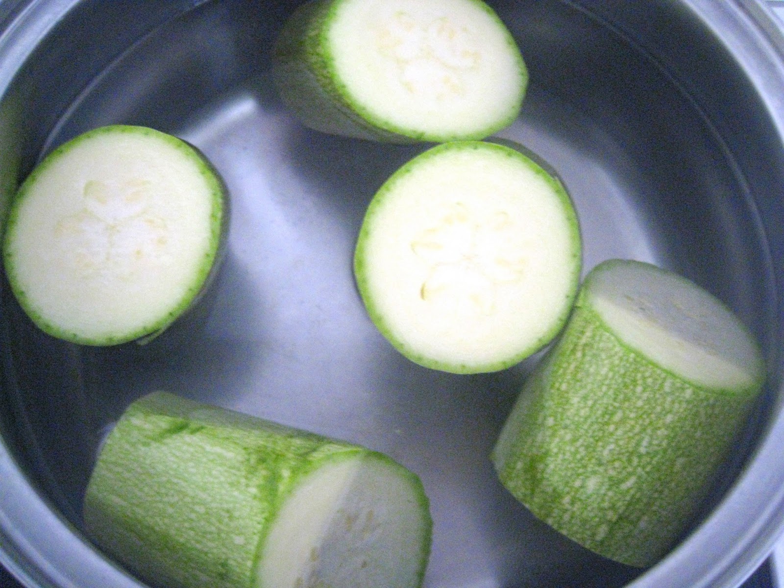 Lavamos los calabacines, los cortamos en trozos homogéneos dándoles la forma deseada. Ponemos a calentar en una olla hasta que hierva, echamos los calabacines y cocemos durante 5-10 minutos.  Lo justo para que se queden la carne blandita y la cáscara «al dente».