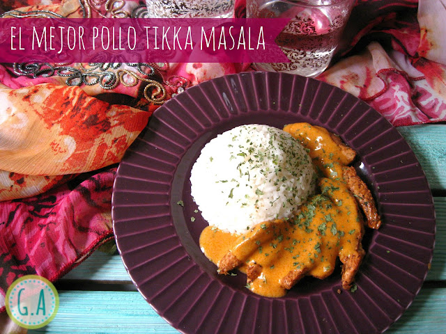 En mi estancia en Inglaterra aprendí que el Fish and Chip ha quedado en segundo lugar como plato estrella de la gastronomía cotidiana Inglesa, el mejor tikka masala lo ha desterrado de ese primer puesto siendo «Britain’s true national dish». No existe una receta estándar para elaborarlo, pero la mayoría de las variantes contienen leche de coco o salsa de tomate con nata, así como diferentes especias. Algunos aseguran que el nacimiento de este plato proviene de la India británica. La necesidad para adaptar el alimento del subcontinente indio al paladar británico debió de ser el motivo de su creación, se suele alegar este razonamiento para demostrar su creación. Hoy os presento mi variante favorita, la de salsa de tomare y nata.