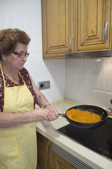 Ponemos a fuego medio y movemos hasta que se quede como si fuera un puré. Quedará una masa que se despega fácilmente de la sartén, y sabremos que está listo cuando se despegue de los lados como en la imagen de Mama Manola.