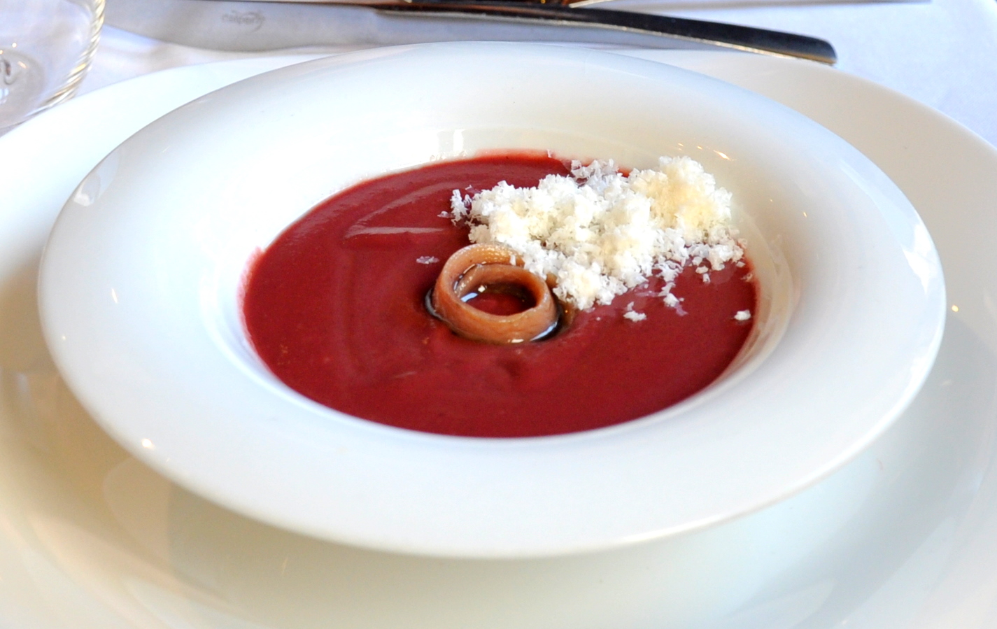 A pesar de su color rojo cereza, su sabor era el de un inconfundible salmorejo con una textura y un sabor delicioso.