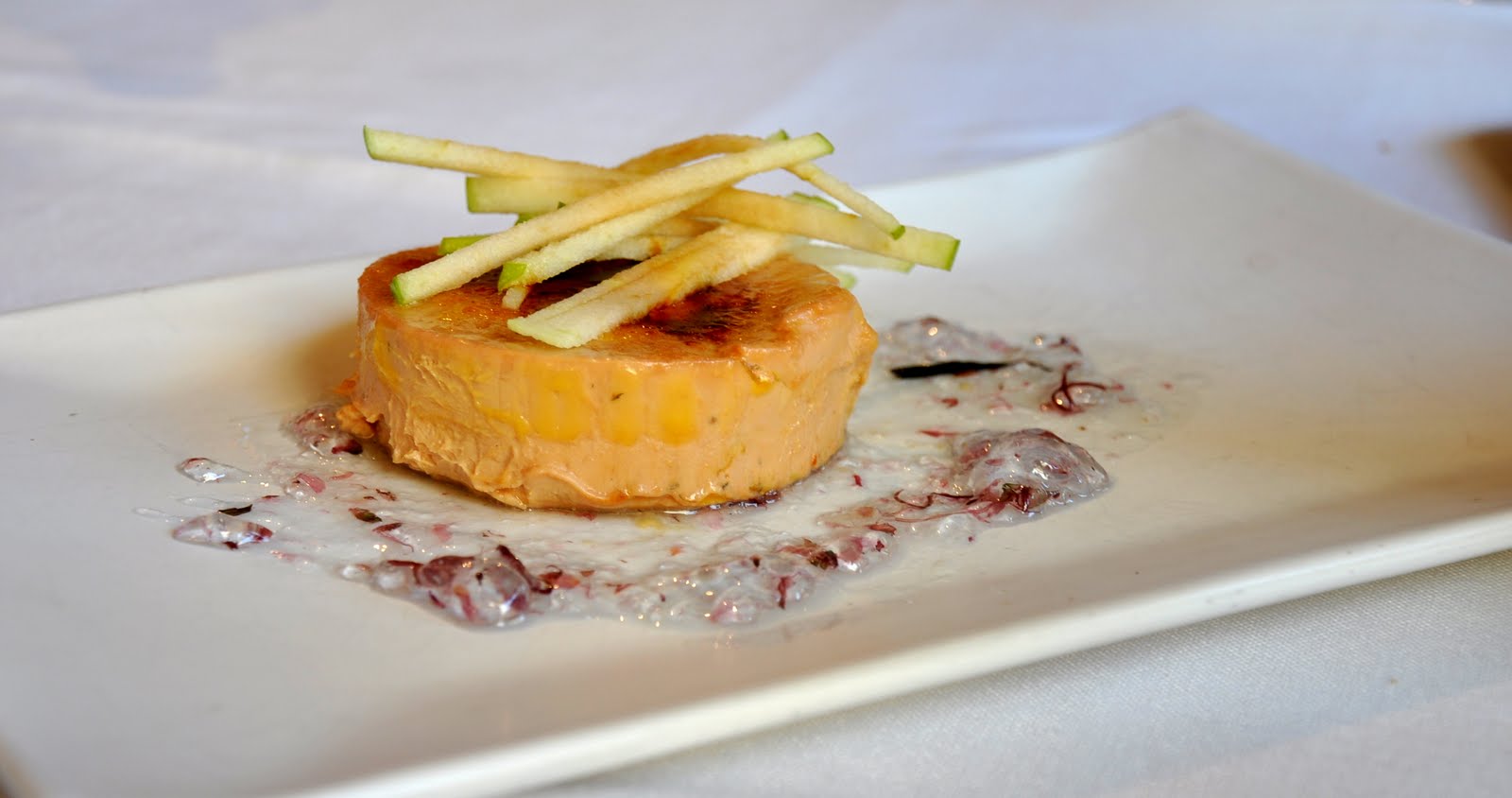 Foie caramelizado con violetas.